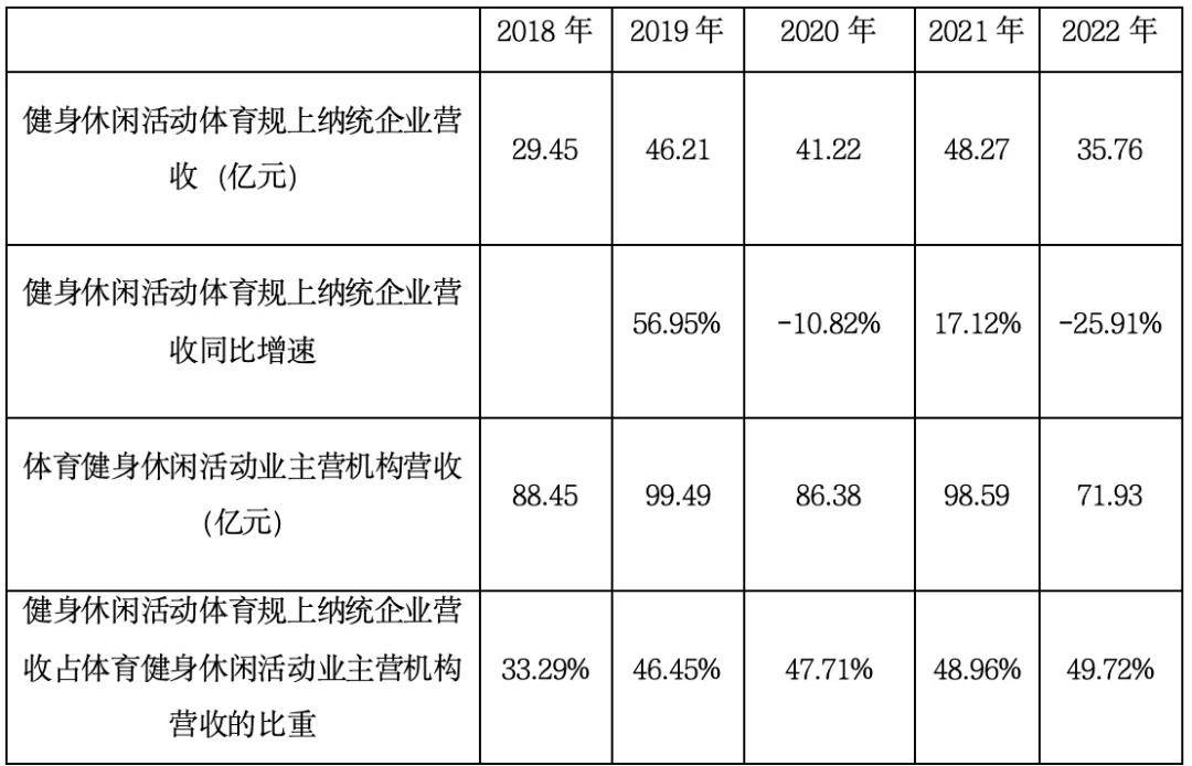 表3 2018—2022年上海市健身休闲活动体育规上纳统企业与体育健身休闲活动业主营机构数据一览表