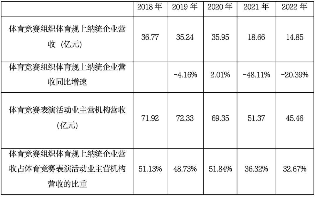 表5 2018—2022年上海市体育竞赛组织体育规上纳统企业与体育竞赛表演活动业主营机构数据一览表