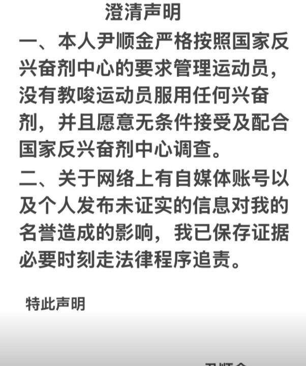 尹顺金的回应也来得很快。同样在深夜,这位青海中长跑教练声明自己完全遵守反规定。他表示愿意无条件配合调查。两人截然不同的说法,让这起药检事件变得扑朔迷离。