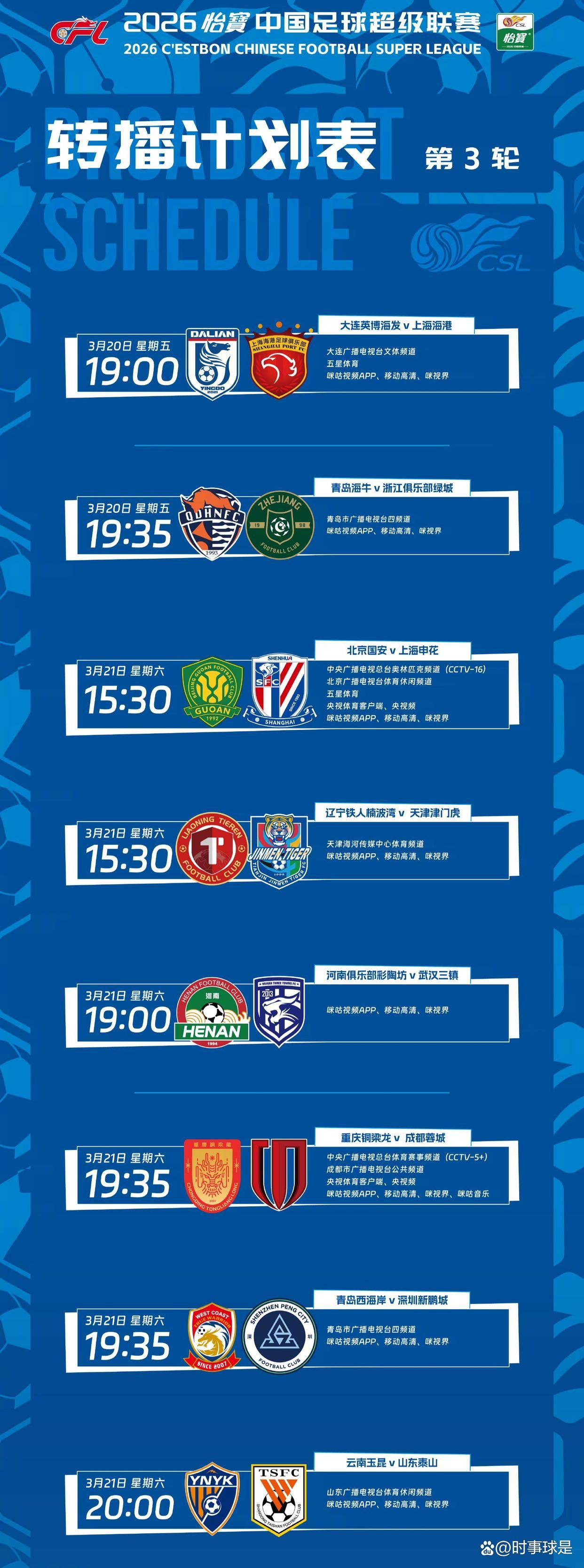 2026-03-25体育,足球,波胆,反波胆,角球,串关,大小球,世界杯,欧洲杯,比分,足球比分,赛事,足球赛事,电竞赛事,体育赛事直播,足球直播平台,世界杯直播,足球直播,体育直播,NBA直播,游戏直播,LOL直播在万众瞩目下,2026赛季中超联赛的烽火即将点燃第三轮的战幕。三月二十和二十一日,各路豪强将在绿茵场上展开激烈的角逐。此轮过后,中超联赛将迎来一段为期两周左右的休整期,各支队伍都渴望以一场胜利为这段征程画上圆满的句号,从而为接下来的休赛期注入更多信心与动力,因此,本轮的比赛注定会更加扣人心弦。根据赛事转播安排,八场比赛都将通过网络平台进行直播,其中七场比赛还将登陆电视荧屏,让广大球迷能够全方位、多角度地欣赏精彩赛事。