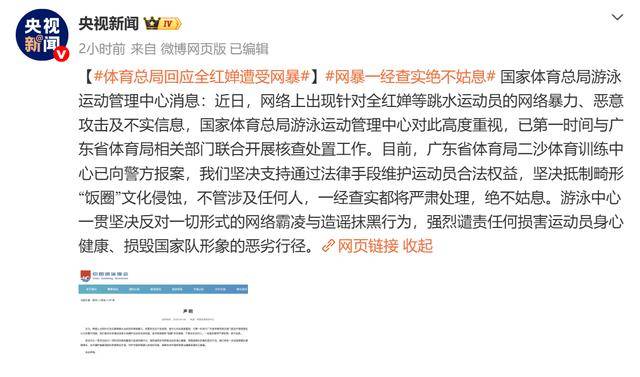 面对愈演愈烈的网暴,广东省二沙体育训练中心没有沉默,果断报警,明确表示要坚决反对网络暴力和畸形饭圈文化,支持全红婵用法律维护自己的权益,追究网暴者的责任。