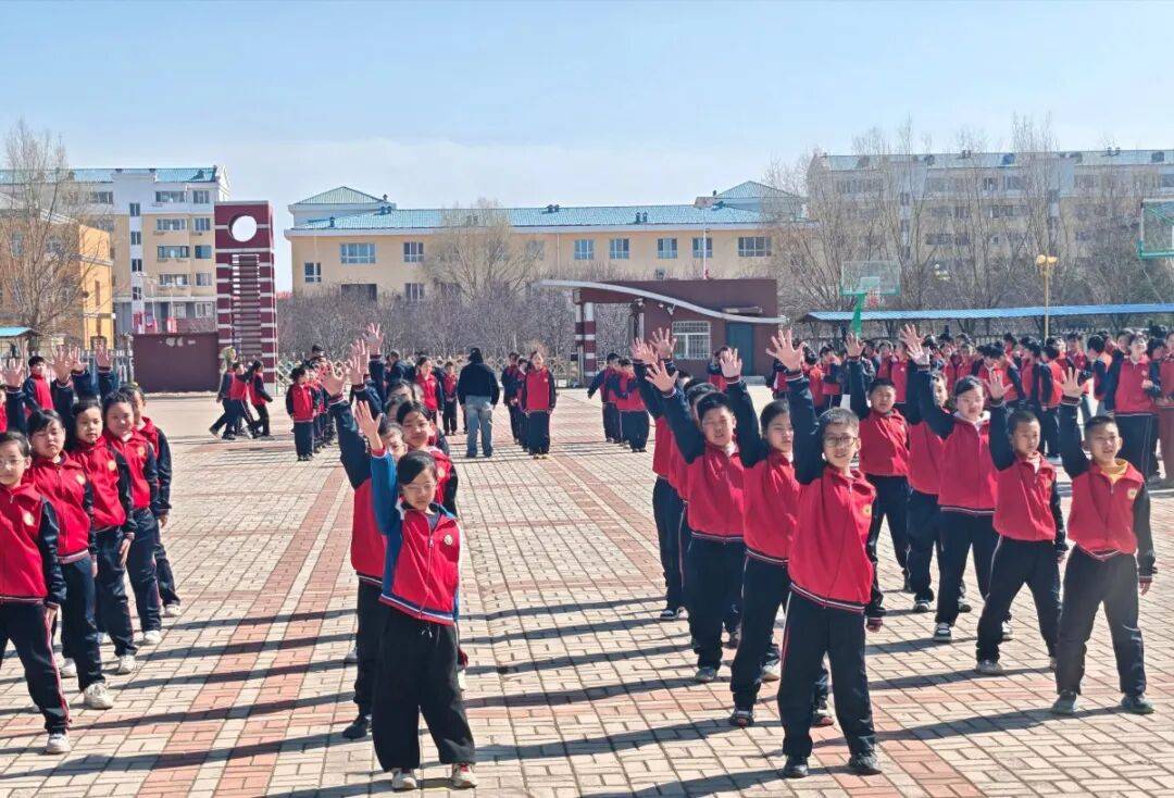 4月14日,大同区高台子小学关工小组组织全校师生“健康动起来”韵律操比赛。
