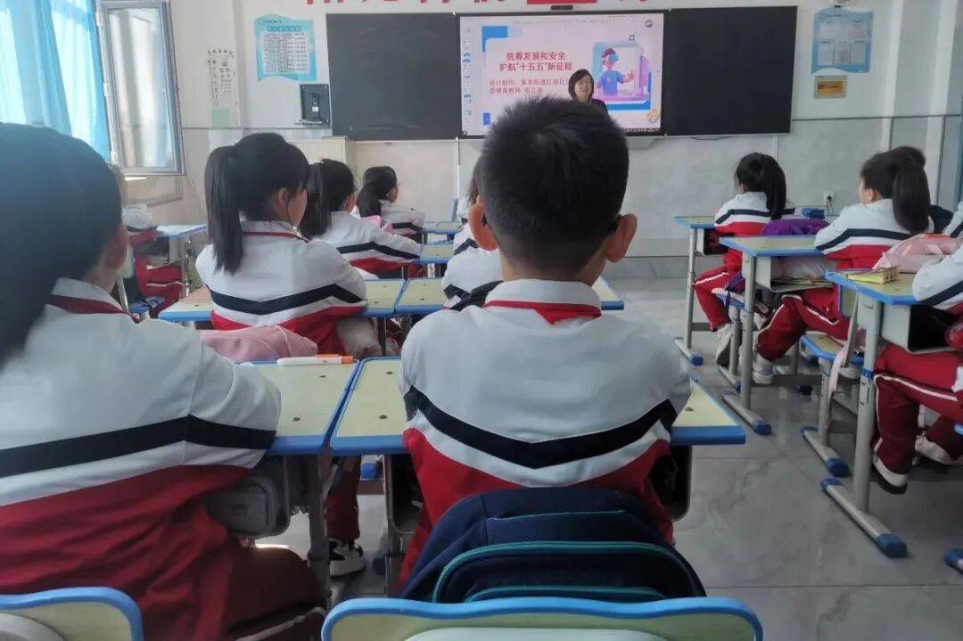 4月14日,北林区紫来街道办事处红旗社区关工委德育教师张立波进驻绥化市雷锋小学三年二班举办“统筹发展和安全 护航‘十五五’新征程”主题活动。