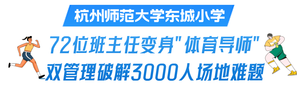 杭州师范大学东城小学面对3000余名学生与场地受限的双重挑战,交出了一份从容而有力的答卷。学校聘请72位班主任为“班级体育导师”,推动全员参与体育育人,体育组协同全体教师共筑“大健康”格局。面对新增的120节体育活动课,创新实施“双管理”机制,1位班级管理教师带队维持秩序,1位年级体育教师巡回指导运动技能;每周统筹发布场地划分图,各年级错峰轮换,确保有序高效。此外,开发击剑操、绳操等特色课程,将体育纳入三有四美五育综合评价体系,以协同之力让大规模学校的全员运动不再是难题,让每个孩子都能在运动中找到归属。