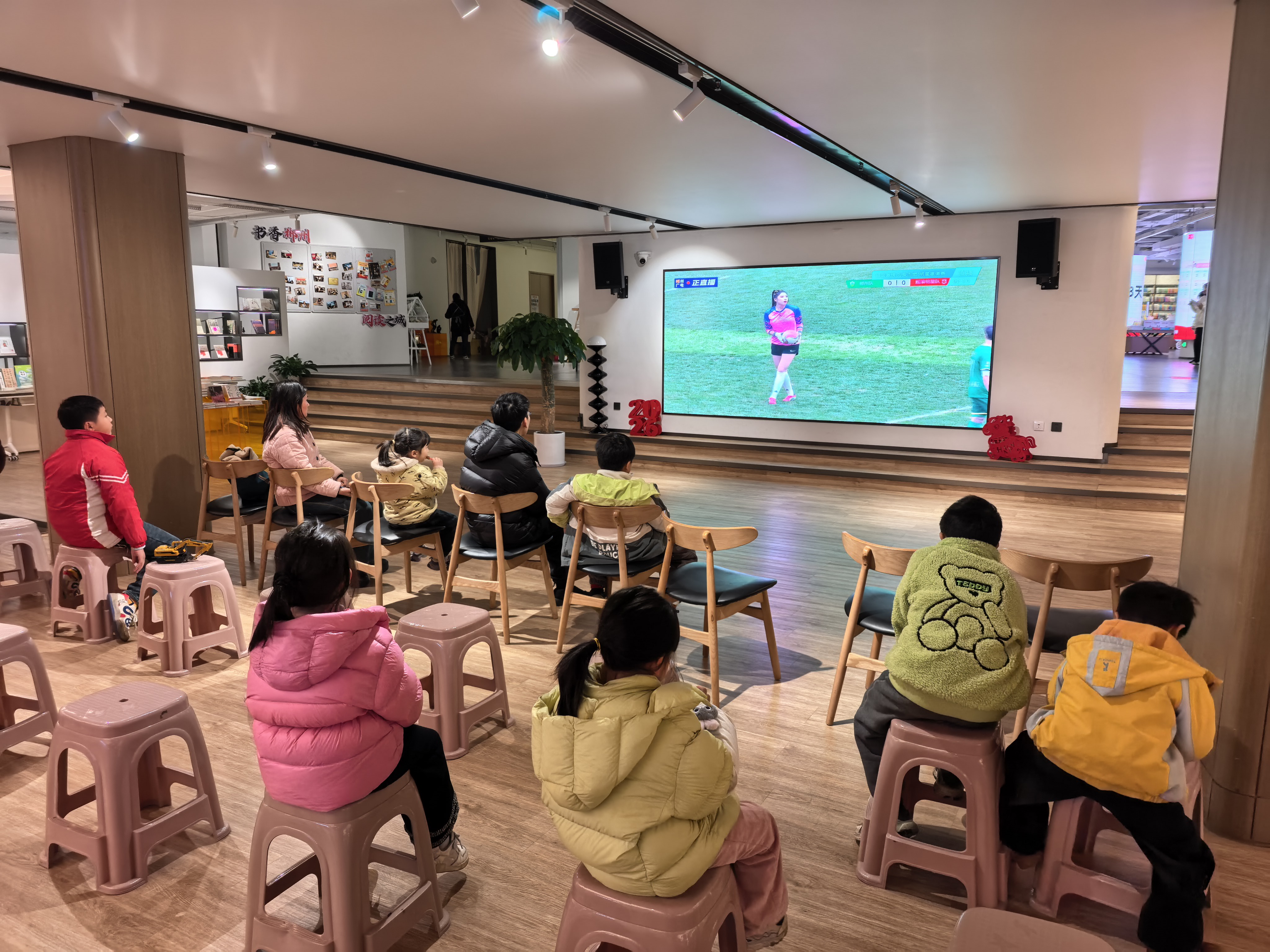 郴州书城内,原本沉浸在阅读时光中的市民们,被赛场的活力与摇滚的激情所吸引。赛事尚未开始,专业摇滚乐队的热场表演便已点燃气氛,铿锵的节奏、嘹亮的歌声穿透书架,引得家长与孩子们纷纷驻足,好奇地围坐在转播屏幕前。足球迷兼摇滚爱好者刘文扬难掩兴奋:“没想到能在郴州看到这么多知名摇滚歌星,既欣赏到了精彩的跨界球赛,又聆听了独具特色的摇滚歌曲,感觉咱们郴州的足球氛围越来越浓厚,期待今年‘湘超’郴州队能再创佳绩!”